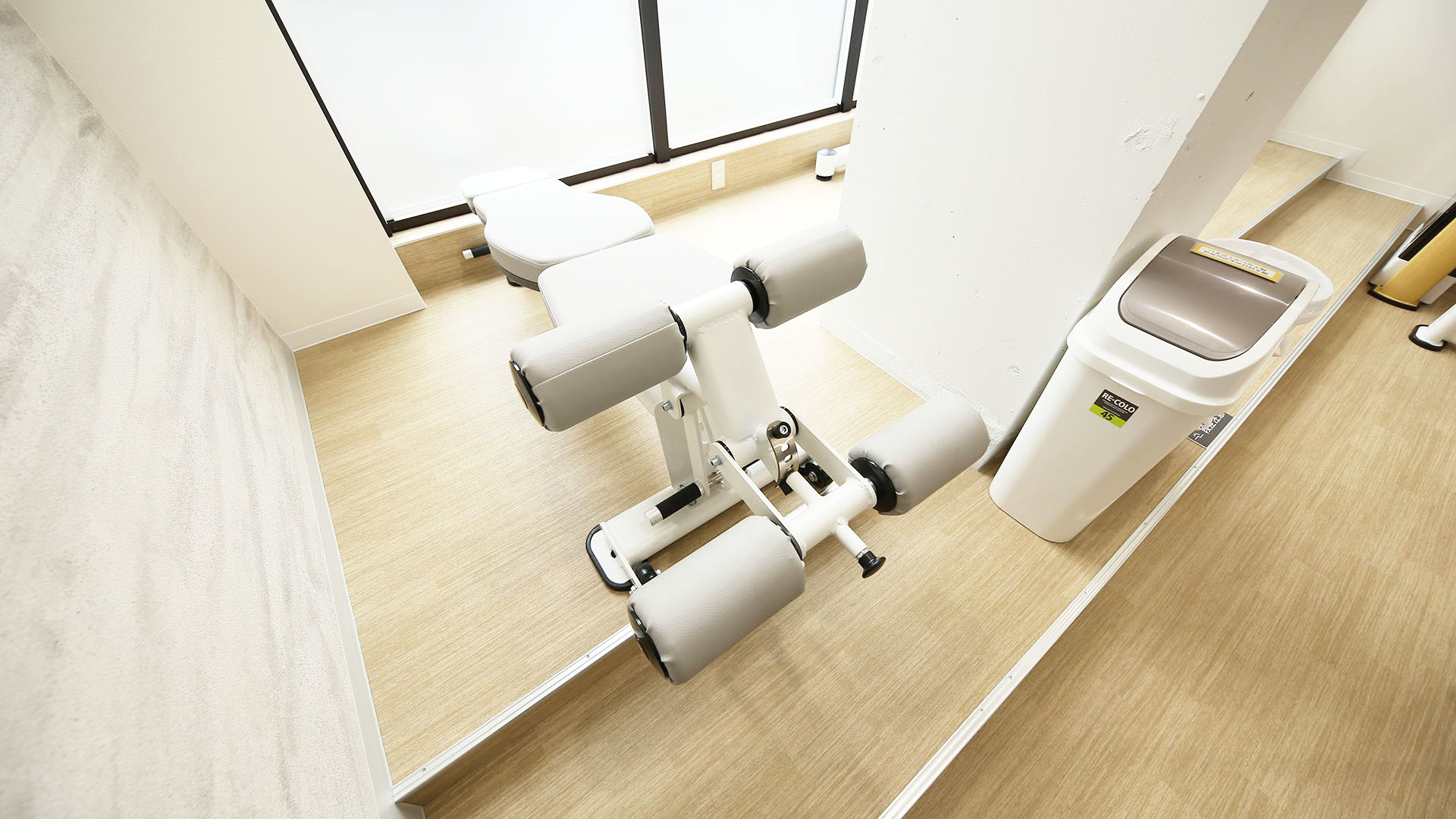 スペースとしてはやや狭いですが、正面鏡張りでマットが敷かれています。