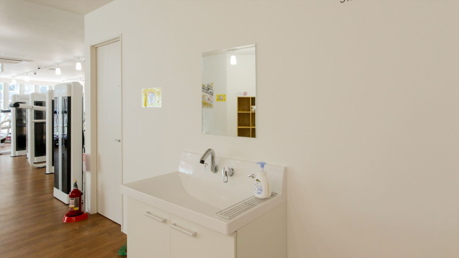 スペースとしてはやや狭いですが、正面鏡張りでマットが敷かれています。