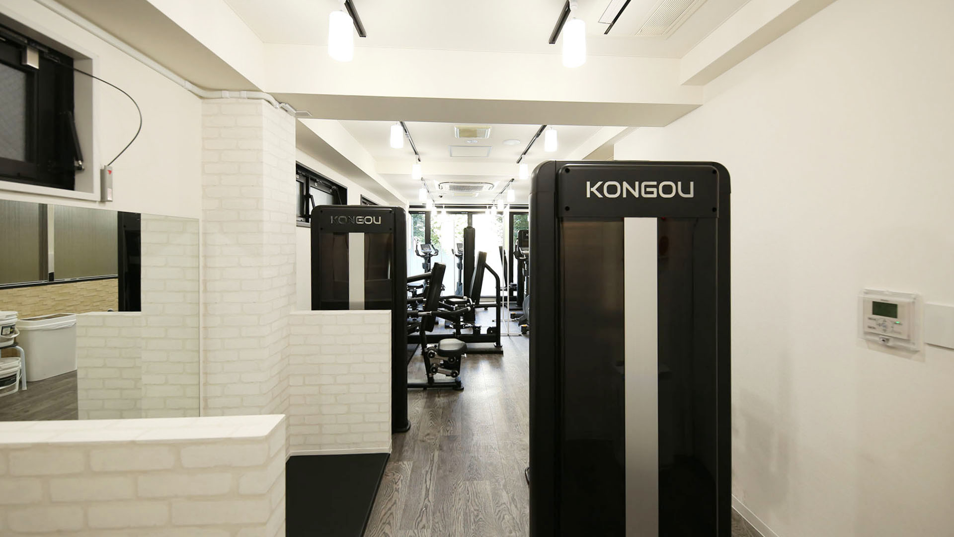 スペースとしてはやや狭いですが、正面鏡張りでマットが敷かれています。