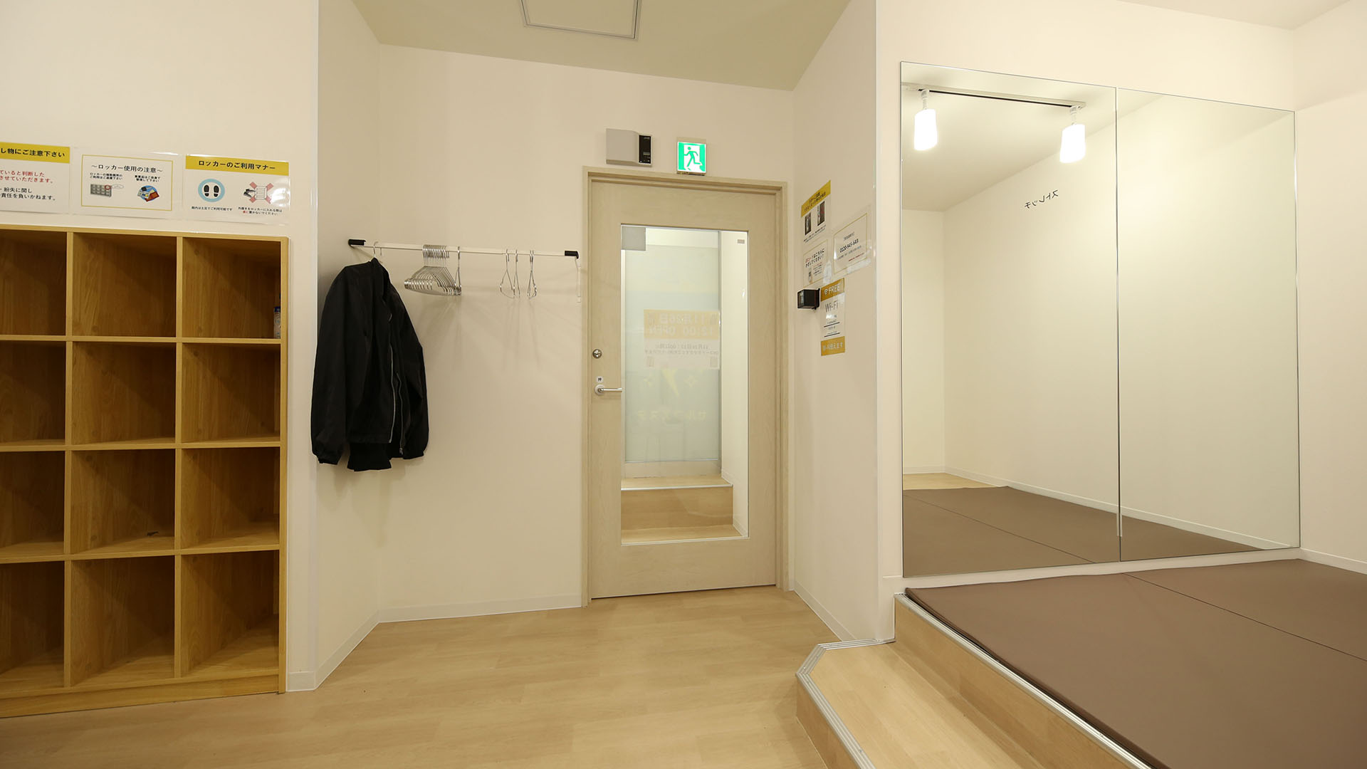 スペースとしてはやや狭いですが、正面鏡張りでマットが敷かれています。